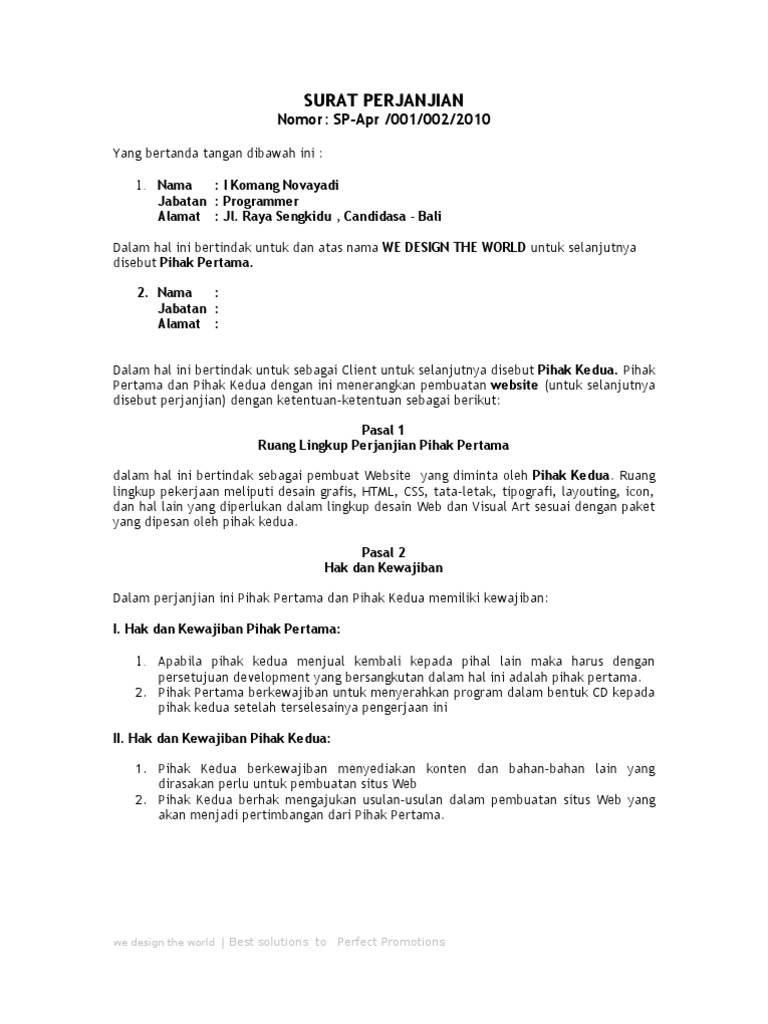 Perjanjian antar dua pihak ini biasa dikenal dengan istilah memorandum of understanding mou. 15 contoh surat perjanjian kerjasama berbagai bidang sebagai suatu perusahaan yang ingin cepat berkembang maka tentu sebuah perusahaan tidak bisa berdiri sendiri tanpa ikatan dengan perusahaan lain. Dalam sebuah kesepakatan baik itu dilakukan antar perorangan atau perusahaan adanya perjanjian dalam bentuk tertulis adalah hal yang utama.