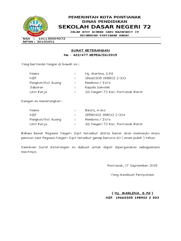 Surat keterangan no. Sekolah dasar negeri 72 jalan atot achmad gang majapahit iv kecamatan pontianak barat nss. Contoh surat keterangan hibah tanah merupakan surat yang menerangkan pemberian atau hibah sebidang tanah kepada orang lain. 422477kepegix2015 yang bertanda tangan di bawah ini.