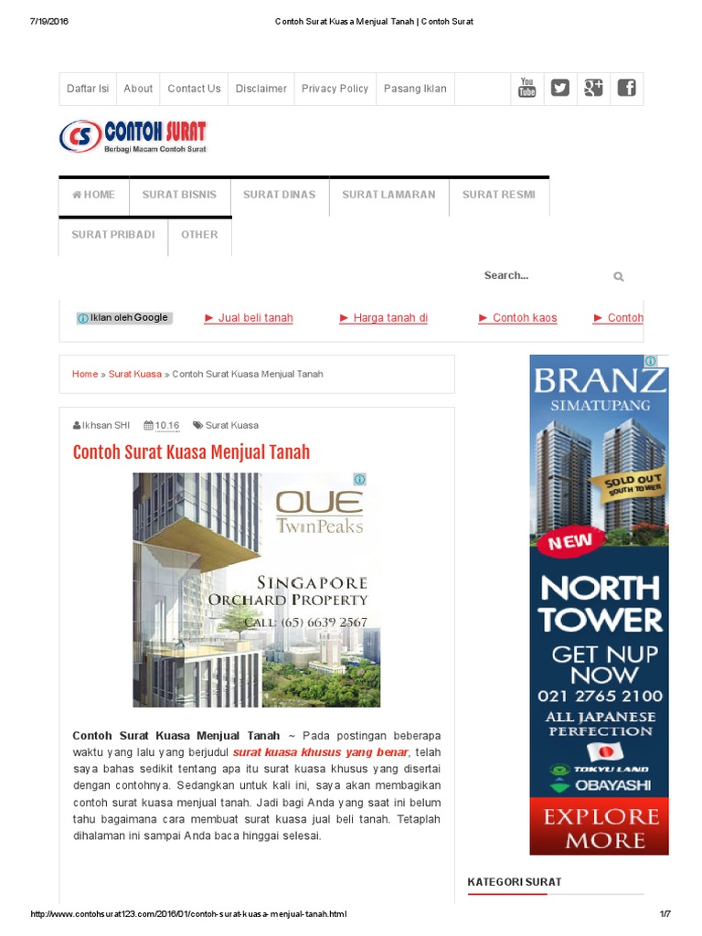 Belum ada sejarahnya harga tanah turun. Contoh format surat kuasa untuk menjual tanah atau rumah. 134 seri 2453a yang terletak di jl. Misalnya saja kuasa tanah yang bisa dipergunakan untuk beberapa hal. Surat kuasa tanah biasanya digunakan pada saat proses jual beli tanah. Contoh surat kuasa no.