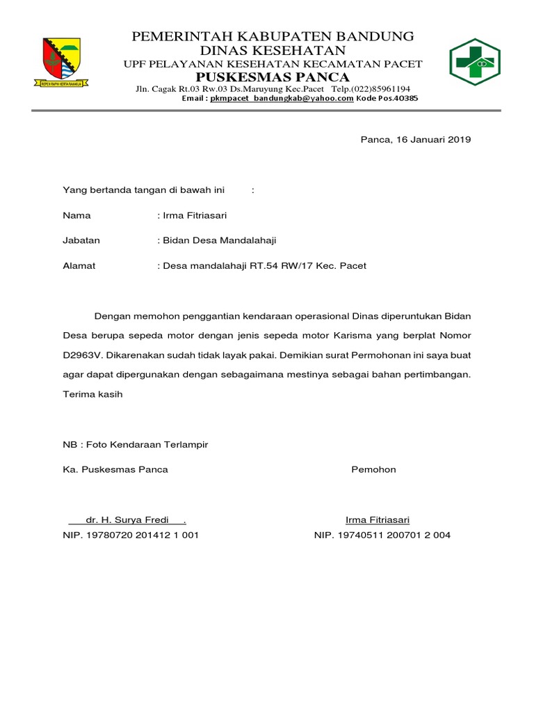 Contoh surat permintaan kendaraan dinas operasional. Proposal permohonan bantuan kendaraan roda tiga adalah surat yang dikeluarkan dari kelompok tani untuk mengajukan permohonanpermintaan kepada pemerintah terkait dalam hal ini yaitu dinas dinpertanbunhut untuk memberikan bantuan berupa kendaraan roda tiga sebagai tambahan kebutuhan pertanian yang lumayan penting dan mudah rusak pantas ditambah alat semprot untuk meyakinkan bahwa sobat adalah. Contoh surat permintaan izin kendaraan. Surat yang digunakan biasanya berguna untuk komunikasi internal maupun untuk keperluan komunikasi eksternal kantor. Contoh surat permintaan kendaraan dinas operasionalbersama ini kami yang bertanda tangan di bawah ini atas nama familia urban project mengajukan permohonan untuk pengadaan kendaraan mobil operasional yang nantinya ditempatkan di proyek. Di bawah ini adalah contoh job safety analisis pengelasan.