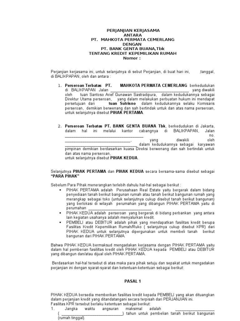 Mari kita simak sebuah cara developer bekerjasama dengan bank yang telah diuraiakan oleh seorang yang telah berkecimpung di dunia perumahan ini kerjasama dengan bank menjadi semacam momok untuk para pemula 2019 10 27 doc contoh surat perjanjian kerjasama usaha bisnis surat. Download contoh surat permohonan kerjasama yang benar. Kerjasama developer dengan bank hampir tidak bisa dilepaskan terlebih bagi developer yang mengerjakan proyek perumahan karena salah satu sistem penjualan perumahan adalah melalui kredit pemilikan rumah kpr. Kerjasama yang menguntungkan antar kedua belah pihak memang seringkali dilakoni oleh para pengusaha demi memajukan perusahaan mereka. Perlu diperhatikan surat permohonan kerjasama menggunakan bahasa resmi sesuai ejaan yang disempurnakan dengan menggunakan tata bahasa yang baik fokus pada tujuan dan tidak bertele tele. 15 kumpulan contoh surat permohonan dana izin.