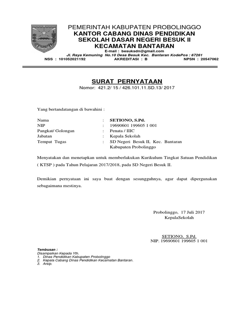 Surat Pernyataan Pemberlakuan Ktsp 2015