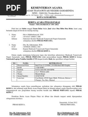 Berita acara pinjam pakai barang milik negara bmn diunggah oleh.