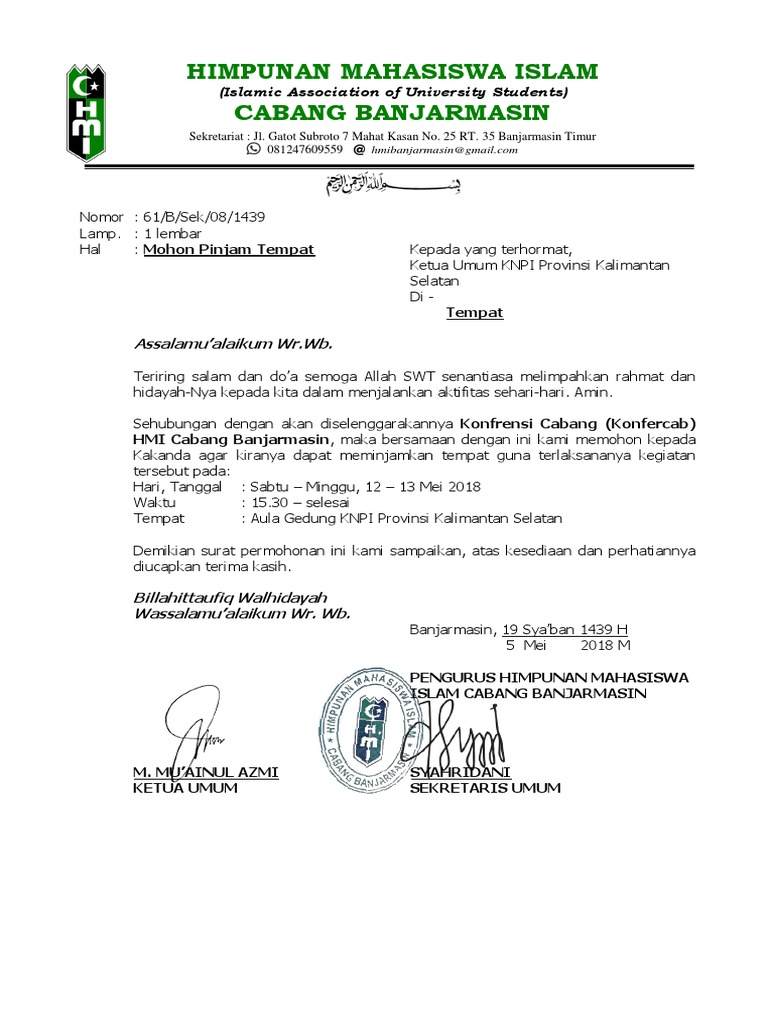 Surat peminjaman tempat contoh surat peminjaman gedung tempat kegiatan pinjam pakai alat kartika bluesky september 19 2019 contoh surat no comments makalahid bagi yang sering menjadi panitia di sebuah event atau bekerja dalam bidang persuratan tak asing dengan surat peminjaman tempat. Contoh surat peminjaman barang tentu saja harus dicari sehingga dalam membuat surat ini akan banyak referensinya. Contoh surat izin peminjaman tempat yang akan kami berikan ini adalah beberapa contoh kata kata penulisan yang mungkin bisa anda contoh. Dengan syarat bahwa barang tersebut harus dikembalikan setelah waktu tertentu.