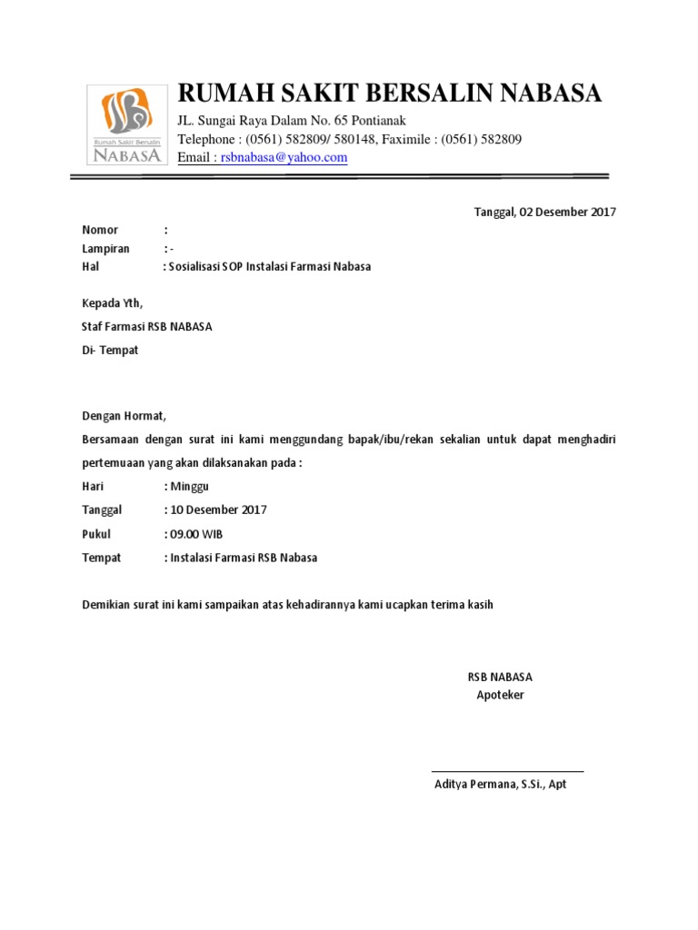 Contoh surat undangan kita tahu surat undangan adalah sebuah tulisan di dalam kertas yang memuat ajakan kepada orang lain baik perorangan maupun kelompok untuk menghadiri kegiatan tertentu. Home surat resmi surat undangan surat undangan menghadiri sosialisasi. Untuk contoh surat undangan resmi nomer dua dimana tidak menyertakan alamat lengkap serta hal lain yang berkaitan dengan perusahaan dibuat demikian karena surat ditujukan pada salah seorang yang merupakan anggota perusahaan. Rapat sendiri memiliki arti suatu kegiatan yang berisi diskusi guna membahas hal hal seperti merencanakan dan mengevaluasi sebuah kegiatan pada suatu tempat. Jumat 03 februari 2017 contoh surat undangan resmi perusahaan pt. Keduanya memiliki karakteristik yang berbeda dan digunakan untuk keperluan yang tidak sama.