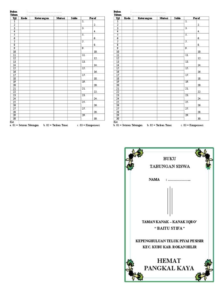 Contoh tabel buku tabungan siswa. Selain itu tampilan aplikasi ini lebih elegan dan minimalis sehingga enak dipandang mata membuat semangat bertambah. Anakciremai masih memberikan artikel yang unik unik. Setelah kemarin di share contoh undangan maulid nabi muhammad saw kini anakciremai akan memberikan contoh buku tabungan siswa dalam hal ini yang sudah anakciremai buat buku tabungan ini digunakan untuk tk budi asih 9. Download contoh desain buku tabungan siswa sd. Pada tampilan menu utama temen2 bisa langsung mengklik salah satu link kelas dari nasabah tabungan para siswa. Download contoh format buku tabungan anak paud tk kb tpa sps format doc yang dapat di edit.
