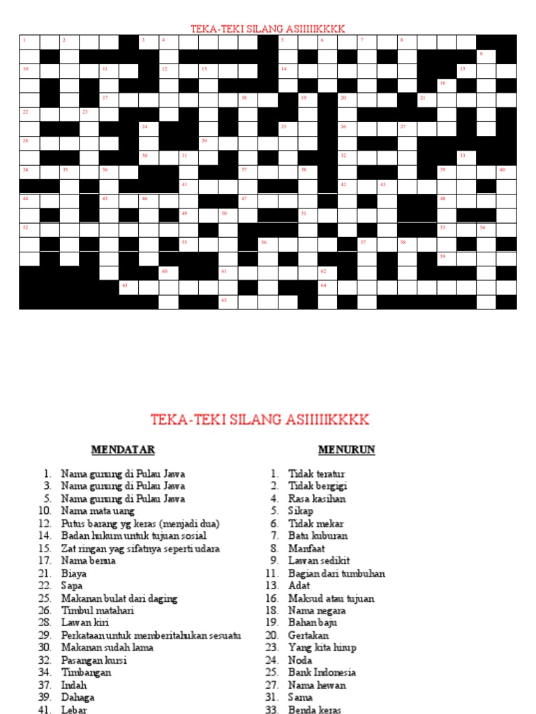 Badan usaha milik negara 16. Jika anda membuat teka teki silang secara manual tenaga yang anda keluarkan mungkin cukup banyak namun dengan menggunakan perangkat pembuat teka teki silang anda tidak perlu menyelesaikannya sendiri. Ya ada yang bilang tts atau teka teki sulit ini bikin tambah keram otak ehh tunggu dulu. Masa ini kami ingin war warkan bahawa sidang admin telah kongsikan satu perkongsian yang sangat bagus untuk murid murid print iaitu pelbagai contoh teka teki silang mudah yang berguna untuk ibubapa. Ternyata crossword kumpulan tts campuran untuk anak ini mempunyai kegunaan positif lainnya. Admin blog barisan contoh 2019 juga mengumpulkan gambar gambar lainnya terkait contoh soal teka teki silang bahasa indonesia dibawah ini.
