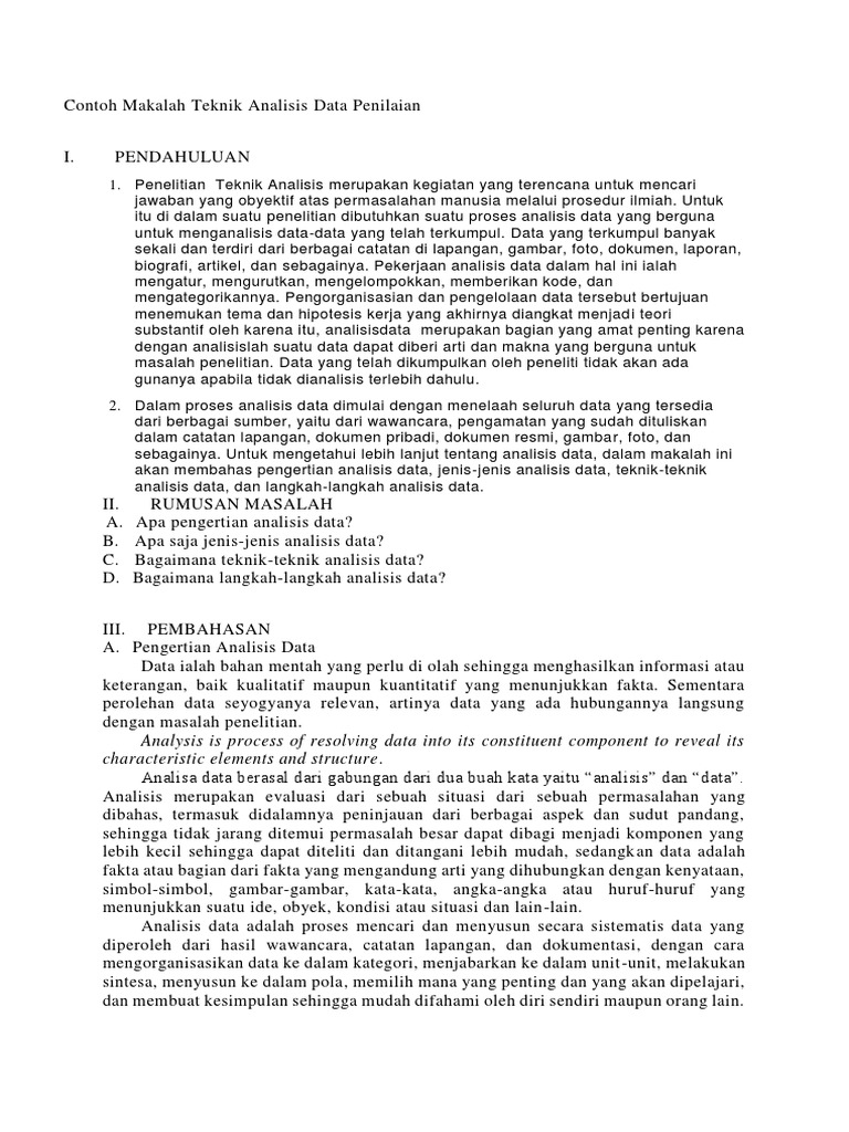 Contoh teknik analisis data. Pada penulisan teknik pengumpulan data biasa diletakan dalam bab 3 dalam sebuah karya ilmiah baik itu skripsi karya tulis ilmiah thesis ataupun laporan penelitian. Bagaimana tidak apabila sedikit saja kita melakukan kesalahan didalam menganalisis data. Berikut ini akan dipaparkan secara lengkap tentang teknik analisis data. Teknik analisis data kualitatif secara prinsipal dan prosedural berbeda dengan teknik analisis data kuantitatif. Ciri dari analisi data inferensial yaitu digunakanya rumus statistik tertentu lalu hasil perhitungan yang sudah dilakukan itulah yang nantinya akan menjadi dasar dari pembuatan generalisasi yang berasal dari samber bagi populasi.