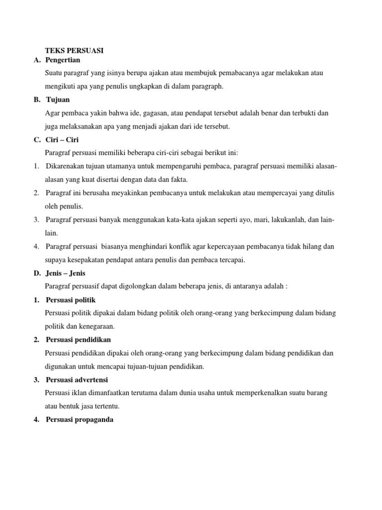 Pengertian struktur ciri ciri dan contoh kata persuasi atau persuasif dalam kamus besar bahasa indonesia memiliki dua arti. Contoh teks persuasif beserta strukturnya brainly. Bagaimana contoh teks persuasif berikut uraian selengkapnya daftar isi artikel1. Contoh teks persuasif teks persuasif umumnya berisi ajakan yang ditujukan untuk pembaca agar melakukan hal tertentu. Contoh teks persuasi beserta strukturnya 14495621 n pendidikan dapat digunakan sebagai batu loncatan untuk mengetahui segala informasi serta ilmu yang ada.
