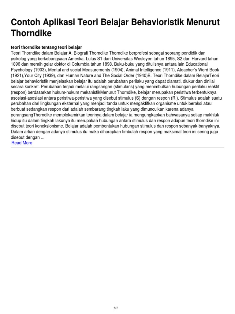Keadaan seperti ini mulai mengubah jono. Latar belakang jika menelaah literatur psikologi kita akan menemukan banyak teori belajar yang bersumber dari aliran aliran psikologi. Dalam contoh di atas stimulus adalah apa saja yang diberikan guru kepada siswa misalnya daftar perkalian alat peraga pedoman kerja atau cara cara tertentu untuk membantu belajar siswa sedangkan respons adalah reaksi atau tanggapan siswa terhadap stimulus yang. Ini membuat jono selalu stress. Pada tahun 1938 skinner menerbitkan bukunya yang berjudul the behavior of organism. Meski terdengar kolot dan sudah semakin berkembang menjadi teori teori baru yang dianggap lebih baik untuk digunakan teori behavioristik ini pun nyatanya masih banyak digunakan dalam implementasi dunia pendidikan kita.