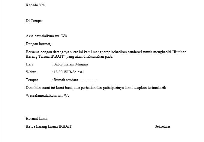 Contoh undangan karang taruna. Selamat datang di website kepemudaan. Dengan hormat bersama dengan ini kami mengharap kehadiran seluruh anggota karang taruna untuk menghadiri rapat yang akan dilaksanakan pada. Sebuah komunitas berisi para pemuda dalam suatu rtrw di daerah. Karang taruna gubeng mojo rt3 rw5. Contoh surat undangan rapat anda tentu pernah menghadiri sebuah acara rapat entah rapat rt rapat karang taruna rapat acara kepanitiaan rapat dengan klien di perusahaan rapat direksi dan lain lain. Surat undangan dengan tujuan rapat karang taruna merupakan salah satu surat resmi karena pada surat undangan rapat terdapat ada kepala surat dan berstempel organisasi.