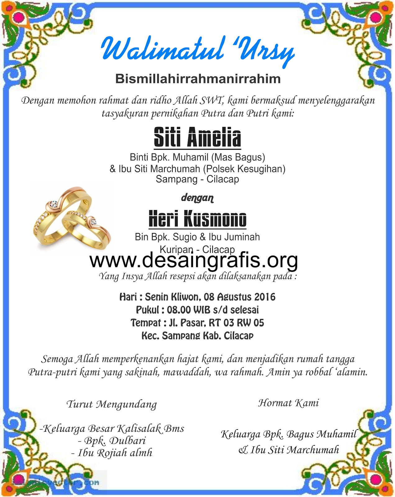 Download undangan walimatul ursy. Mohon maaf apabila banyak kesalahan dalam penulisan artikel atau informasi tersebut yang ada kaitannya dengan contoh. Semuanya bisa diedit sesuai kebutuhan dan dapat dicetak di jenis kertas apa pun. Undangan walimatul ursy doc di dalam pernikahan rasanya tidak lengkap jika tidak dibarengi dengan acara walimatul ursy. Itulah beberapa contoh undangan walimatul ursy untuk anda. Pada kesempatan ini falah mulyana akan share down load layout undangan khitanan corel draw dan mudahmudah an bermanfaat bagi sobat blogger semuanya apalagi buat sobat blogger yang sudah mempunyai anak dan akan segera di khitan mungkin down load format undangan khitanan corel draw akan sangat berguna sekali.