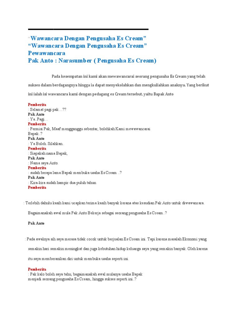 Contoh wawancara anak sd dengan pedagang. Contoh wawancara menurut kamus besar bahasa indonesia wawancara adalah proses tanya jawab lisan antara dua orang atau lebih secara langsung.